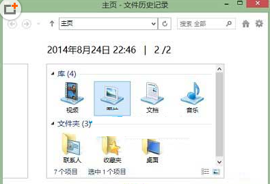 2、在涌现的主页-文件历史记载里面,点击选中我们需要恢复的“库”,然后点击“还原到原始地位”按钮,就可以了!