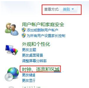 2、将把持面板的查看方法修正为“类别”,然后点击下面的“时钟、语言和区域”;