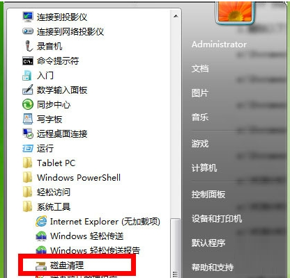 1、开端-程序-附件-系统工具-碎片收拾-C盘碎片收拾。