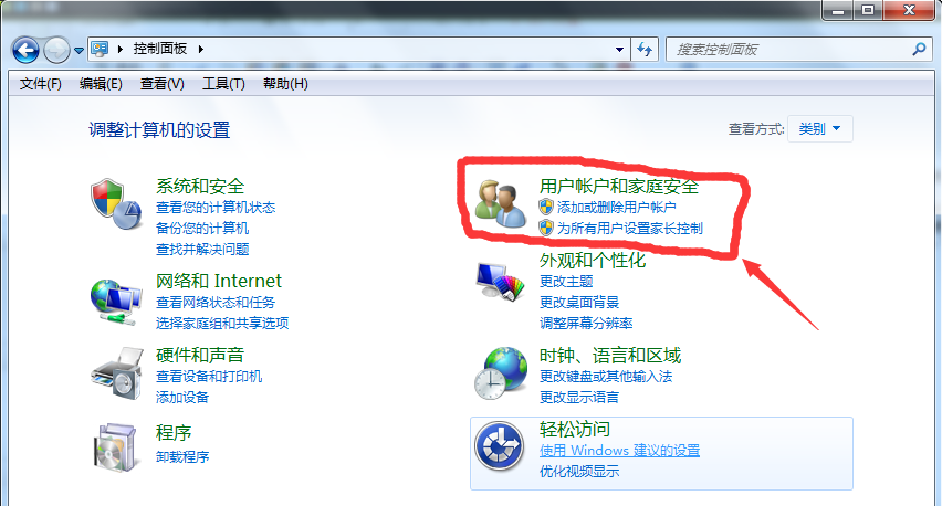 1、打开Windows7系统中的用户账户把持uac,进入把持面板--用户账户或家庭安全;