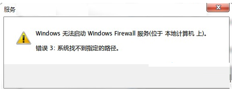 最近,部分Win7系统用户在开启防火墙功效时,创造无法开启并且还弹出提示框,提示“毛病3:系统找不到指定路径”,具体故障如下图所示。这是什么情况呢?现在,不妨来参考下文介绍的方法来处理此问题吧。