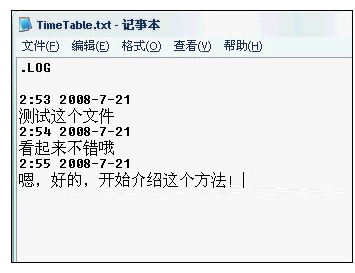 4、再重新打开的文件中,一个正确的时间涌现在了“.LOG”下方,这时你便可以记载下当前的状态。每当工作有进一步发展,你只需要按下F5键,便会主动生成一行正确的当前时间,然后持续记载。