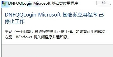 核心提示:有些用户在Win7系统中玩着款网游的过程中弹出一个提示框,提示“DNFQQLongin Microsoft基础类应用程序已停止工作”,具体故障可以查看下图。这问题该怎么来处理呢?...