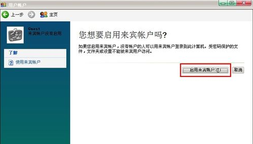 3、然落后入Guest。我们点击启用来宾账户即可!