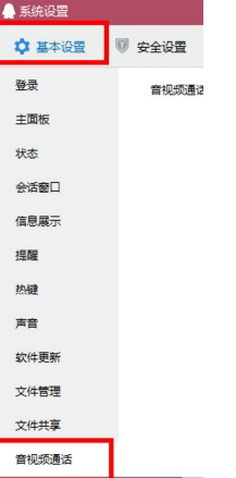 4、在“系统设置”界面左侧找到并点击“音视频通话”;