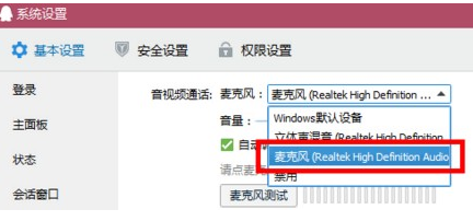 5、然后在右侧“麦克风”下拉菜单中选择为之前记下来的“麦克风”;