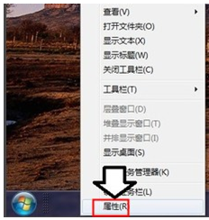 1、在桌面底部任务栏上单击右键,选择“属性”;