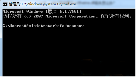 3、在命令提示符内输入“sfc/scannow”然后回车,系统会进行扫描修复,等候扫描完成,将其最小化;