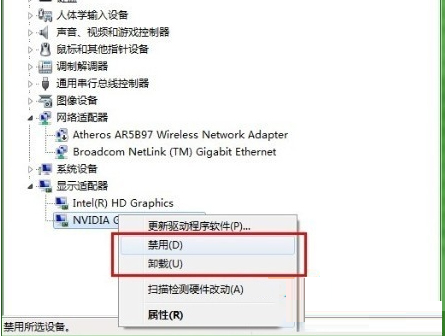 3、右键点击Nvidia 或AMD选择禁用即可。