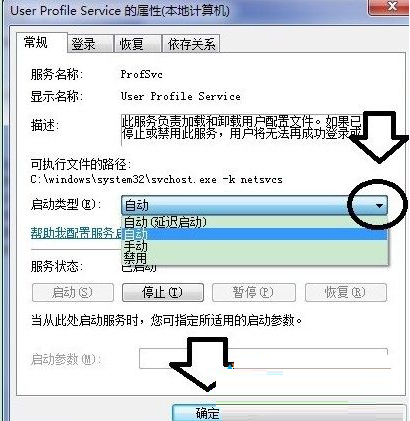 2、双击打开“User Profile Service”,将启动类型修正为“主动”或者“手动”点击利用接着点击“启动”最后点击断定;
