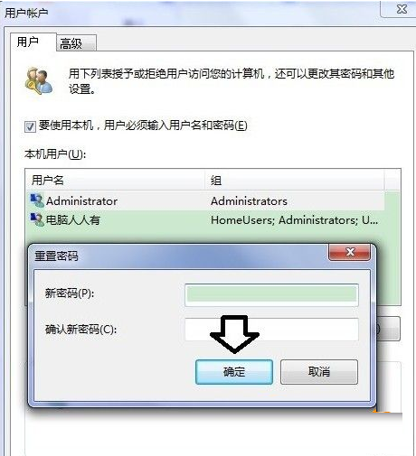 5、如无需密码,空缺密码,之后点击断定,重启电脑即可进入Administrator管理员账户了(可以新建账户)。