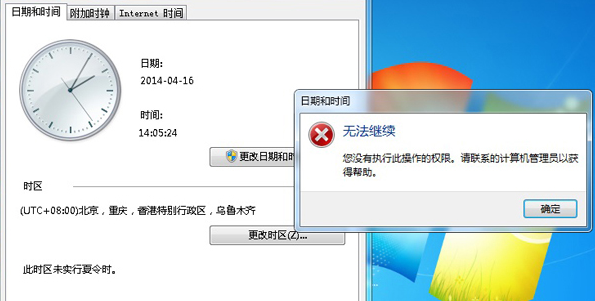 在Win7系统中修正时间,信任大家都不会陌生,只要点击任务栏右下角的时间区域进入日期和时间设置就可以了。不过,有些用户创造Win7系统无法修正时间并且提示“您没有履行此操作的权限,请接洽的盘算机管理员已获得赞助”。遇到这问题该怎么处理呢?且看下文具体介绍。