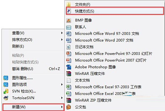 1、在桌面上和单击右键,选择“新建”—“快捷方法”;