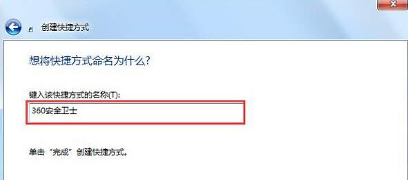 3、在创立快捷方法窗口将快捷方法名称修正为“360安全卫士”完成即可。