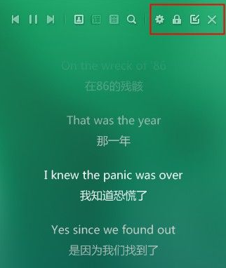 3、从右数起,第二个按钮是切换歌词显示的方法,点击之后歌词就会从“桌面歌词”模式变成“面板模式”,在次点击即可切换回“桌面歌词”显示模式;