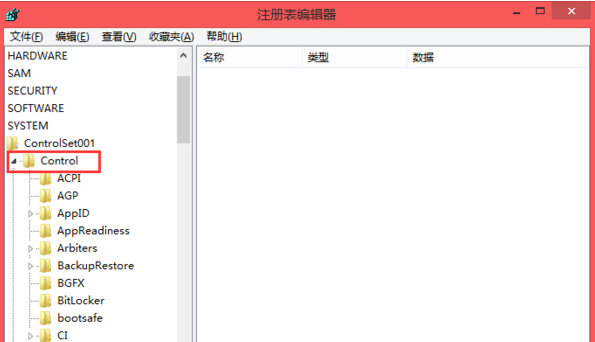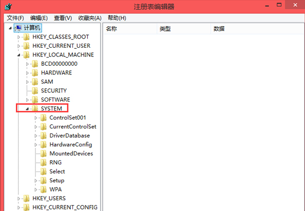 3、找选项框内的System,并点击展开。展开后找到图中框内的项目ControlSet001,并点击展开。