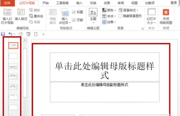 3、选择左边任意一个幻灯片缩略图,将主图的文本框删除;如下图所示