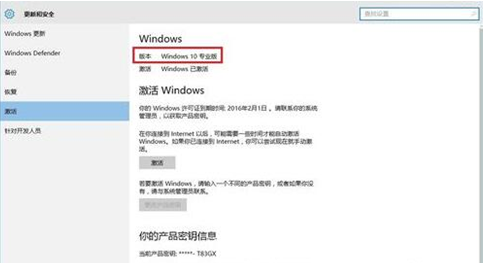 1、当Win10系统提示“windows允许证即将过期”窗口时,直接点击“转到‘设置’”按钮,此时将显示“Windows激活”界面,从此界面中可以获取当前Win10版本信息。如图所示,Win10系统为“Windows 10专业版”。