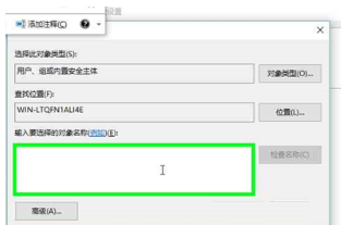 3、在输入对象名称中输入你登录系统的管理员帐户名,如不方便输入可以点击“高级”然后查找并选择你的帐户;