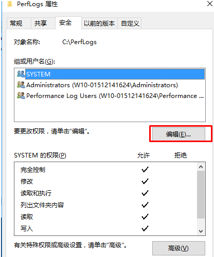 5、回到文件或文件夹属性-安全界面,然后点击编辑 按钮;