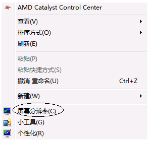 1、右键鼠标桌面-屏幕分辨率