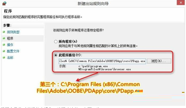 3、选择规矩利用于指定的程序,共有三个,这里就演示一个,其它两个设置雷同,设置好后,点下一步
