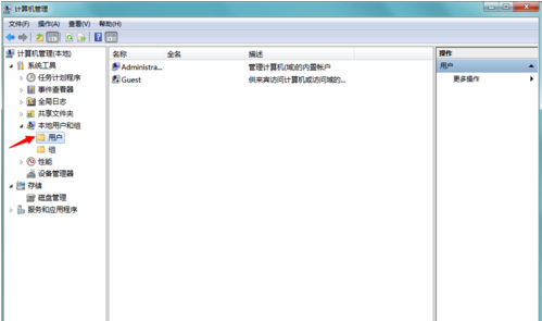 3、进入盘算机管理界面,依次点击【本地用户和组】【用户】如下图所示