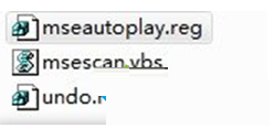 2、mseautoplay.zip压缩包下载后解压,里面包含三个文件,mseautoplay.reg(注册表项文件)、msescan.vbs(VB脚本文件)和undo.reg。