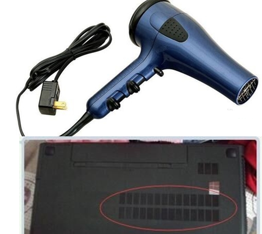 1、用吹风机对着笔记本后面有风口的地位吹上两分钟左右,最多5分钟,再次开机,尝试下能不能正常开机,一般如果是冬天或下雨天重要是因为短路造成的。如若不行,进行下一步。