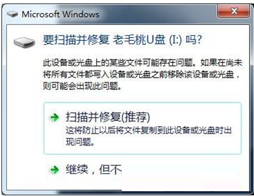 Win7系统提示U盘扫描并修复该怎么取消呢?_重装