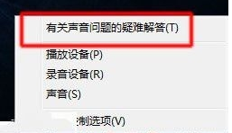 4、右键点击该图标,然后点击“有关声音问题的疑难解答” 。如图 2 有关声音问题的疑难解答所示:
