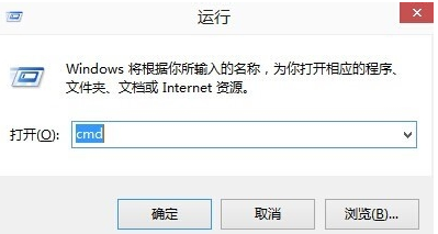 第一步、按下Ctrl+R,打开运行命令输入框,在里面键入“cmd(不分大小写)”后回车,或者点击断定。