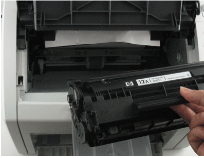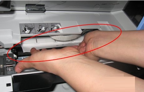 4、双面器卡纸:首先打开双面盖拉动一下看不能不能拉出纸,如果不能的话把就先墨盒拿出来就能轻易把纸张拿出了。如图: