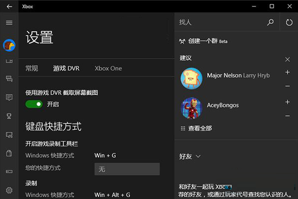 1、打开Xbox利用,点击左侧最下面的设置按钮——游戏DVR,然后关闭“应用游戏DVR截取屏幕截图”选项即可。