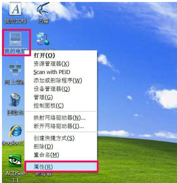 1,首先在桌面上,鼠标右击“我的电脑”,在右键菜单中选择“属性”这一项,然后在系统属性窗口中选择“硬件”下的“设备管理器”。