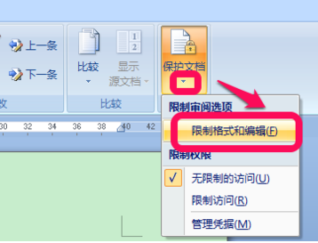 2、在点击掩护文档的小箭头——》限制格式和编辑。