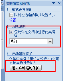 3、在wrd右边弹出的限制格式和编辑的对话框中,首先,勾上仅容许在文档中进行此类编辑,然后选择修正。