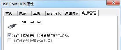 3、双击USB Root Hub选项,在打开属性对话框,切换到“电源管理”,将“容许盘算机关闭这个设备以节俭电源”选项取消后按“断定”按钮即可;如下图所示: