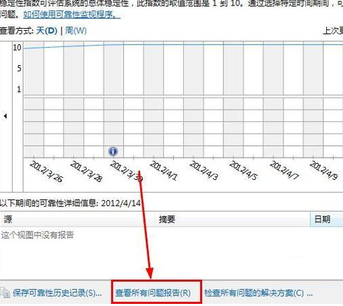 2.在掩护下面,点击下拉菜单,再点击“查看可靠性历史记载”