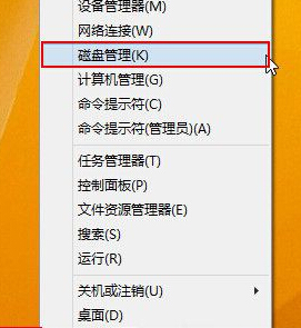 1、在桌面按下“Win键+X键”组合键,然后选择“磁盘管理(K)”即可进入,如下图所示:
