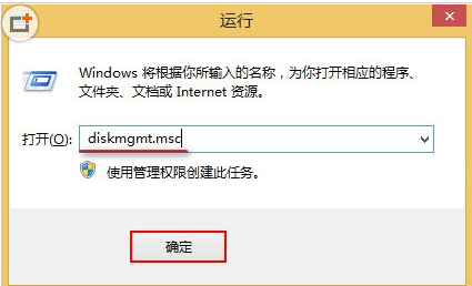 2、然后在运行对话框输入“diskmgmt.msc”,按下回车键确认,如下图所示: