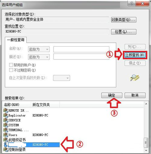 3、安全→添加→高级→立即查找→选中当前账户→断定