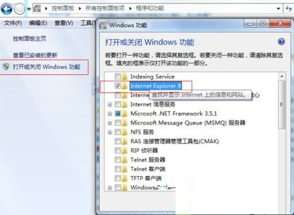 2、查看internet explore前面的勾选是否打上了,如果没有打上,将勾选打上,然后重启电脑即可解决。