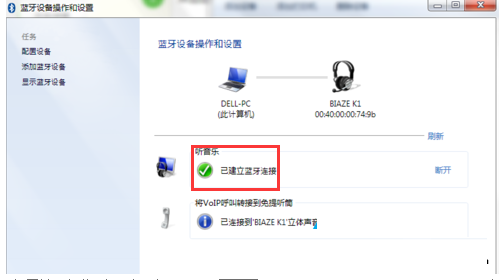 3、可以看到连接状态,其中“听音乐”这项要保持连接,不能断开;