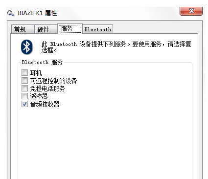 4、打开蓝牙设备属性,切换到“服务”选项卡,要勾选“音频吸收器”,并点击断定,如果勾选其他项,会使其音效降落;