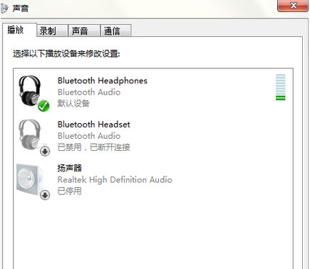 5、最后查看播放设备设置,要选择立体声高音质的Bluetooth Headphone。