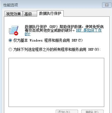 3、右键盘算机—属性—高级系统设置—性能—设置—数据履行掩护,查看是否开启DEP;