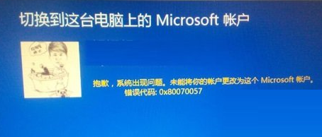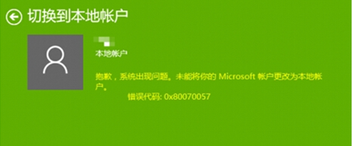 说来也怪,有些用户在Win10系统中将微软帐户切换到本地帐户(本地切换到微软帐户)或者将微软帐户切换到Microsoft账户时老是会提示毛病代码0x80070057,具体如下图所示。遇到这问题该怎么来处理呢?现在,针对此问题小编就和大家分享两种解决方法,一起来看下文具体操作吧。