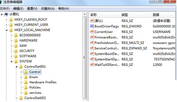 2、依次展开HKEY_LOCAL_MACHINE—SYSTEM—ControlSet001—Control—GraphicsDrivers—Configuration;