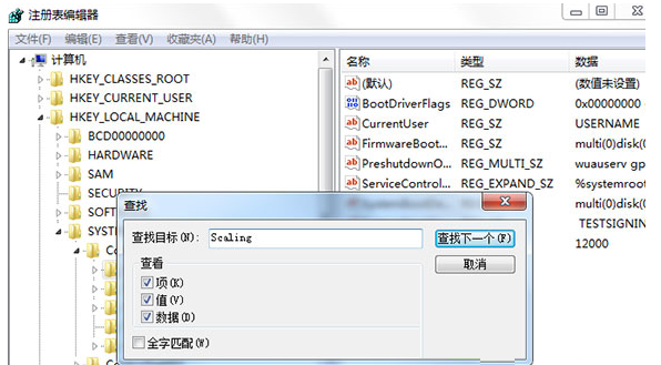 3、然后右键点击Configuration选择查找,输入Scaling;